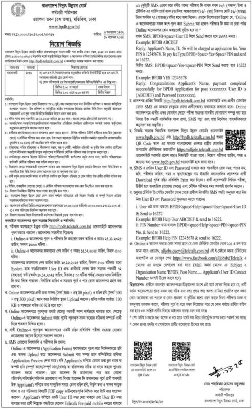 জনবল নিয়োগে বাংলাদেশ বিদ্যুৎ উন্নয়ন বোর্ডের (বিপিডিবি) অধীনে কর্মচারী পরিদপ্তর একটি নিয়োগ বিজ্ঞপ্তি প্রকাশ করেছে।