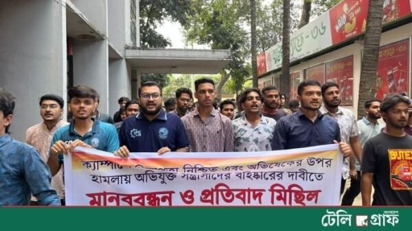আলভী আহমেদ, বুটেক্স প্রতিনিধি। বাংলাদেশ টেক্সটাইল বিশ্ববিদ্যালয়ের (বুটেক্স) ৪৯তম ব্যাচের শিক্ষার্থী অভিষেক চন্দ শ্রাবণের ওপর শারীরিক হামলার প্রতিবাদে আজ (৬