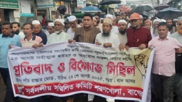 শরণখোলা(বাগেরহাট)প্রতিনিধি।ইলেকশন কমিশন কর্তৃক সংসদীয় আসন ৯৮ বাগেরহাট-৪ বিলুপ্ত করে তিনটি আসন ঘোষণা করায় তার প্রতিবাদে বাগেরহাট জেলাব নয়টি উপজেলায় হরতাল