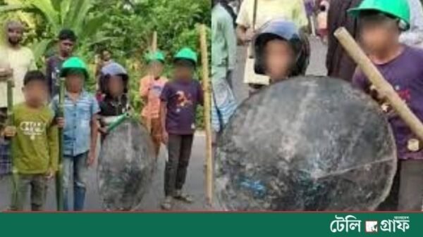 ফরিদপুর প্রতিদিন। ফরিদপুরের ভাঙ্গায় নিষিদ্ধ ঘোষিত আওয়ামী লীগের ডাকা লকডাউনে মহাসড়ক অবরোধ চলাকালে শিশুদের হাতে দেশীয় অস্ত্র তুলে দেওয়ার ঘটনা
