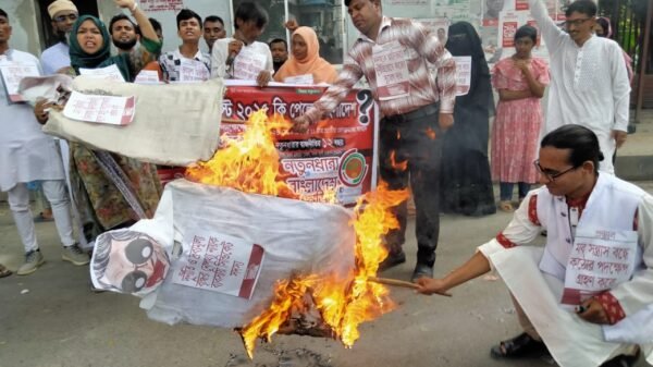 ডেস্ক নিউজ। প্রতীকী মবসন্ত্রাসী-ছিনতাইকারী-ধর্ষক-খুনীদের কুশপুত্তলিকা দাহ করেছে নতুনধারা বাংলাদেশ এনডিবি। ২৬ সেপ্টেম্বর বেলা ১১ টায় জাতীয় প্রেসক্লাবের সামনে আগস্ট ২০২৪